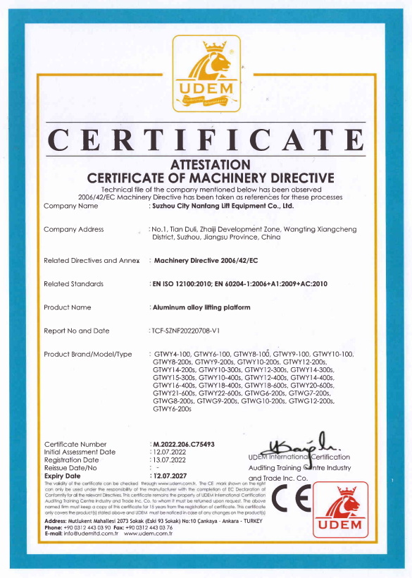 蘇州市南方升降設(shè)備有限公司(原蘇州市南方升降機(jī)廠(chǎng)),本企業(yè)成立以來(lái),一直致力于液壓升降機(jī)系列產(chǎn)品的生產(chǎn)和開(kāi)發(fā),并經(jīng)蘇州市技術(shù)監(jiān)督局檢測(cè)中心檢測(cè)為蘇州名牌產(chǎn)品(2011年1月-2012年12月)。 本公司生產(chǎn)的系列產(chǎn)品適用普通 220V 、 380V 電壓,具有升降平穩(wěn)、操作簡(jiǎn)單、維護(hù)方便、安全省電等顯著特點(diǎn)。廣泛應(yīng)用于工礦、公路、交通、郵電、電力、路燈管理等高空設(shè)備的安裝檢修 ; 倉(cāng)庫(kù)、碼頭、機(jī)場(chǎng)、物流企業(yè)的貨物裝卸;物料搬運(yùn),產(chǎn)品堆垛;體育場(chǎng)館、會(huì)堂以及其它高層建筑的場(chǎng)景布置,清潔維護(hù)等工作。能提高用戶(hù)企業(yè)的工作效率。